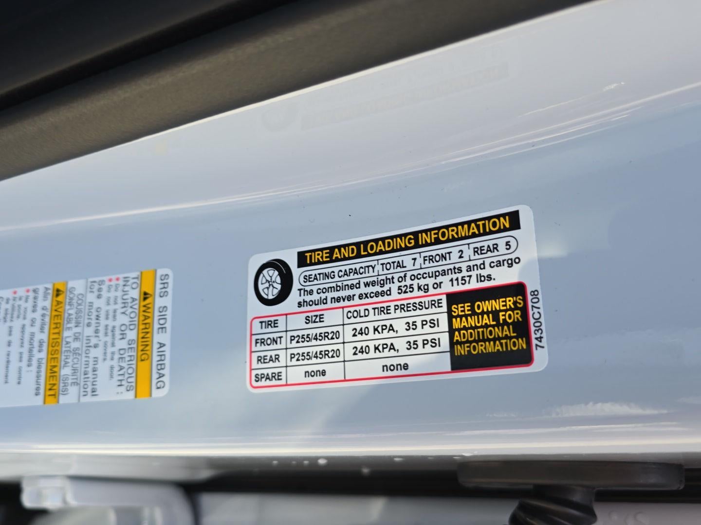 - Front Tire Size: P255/45WR20