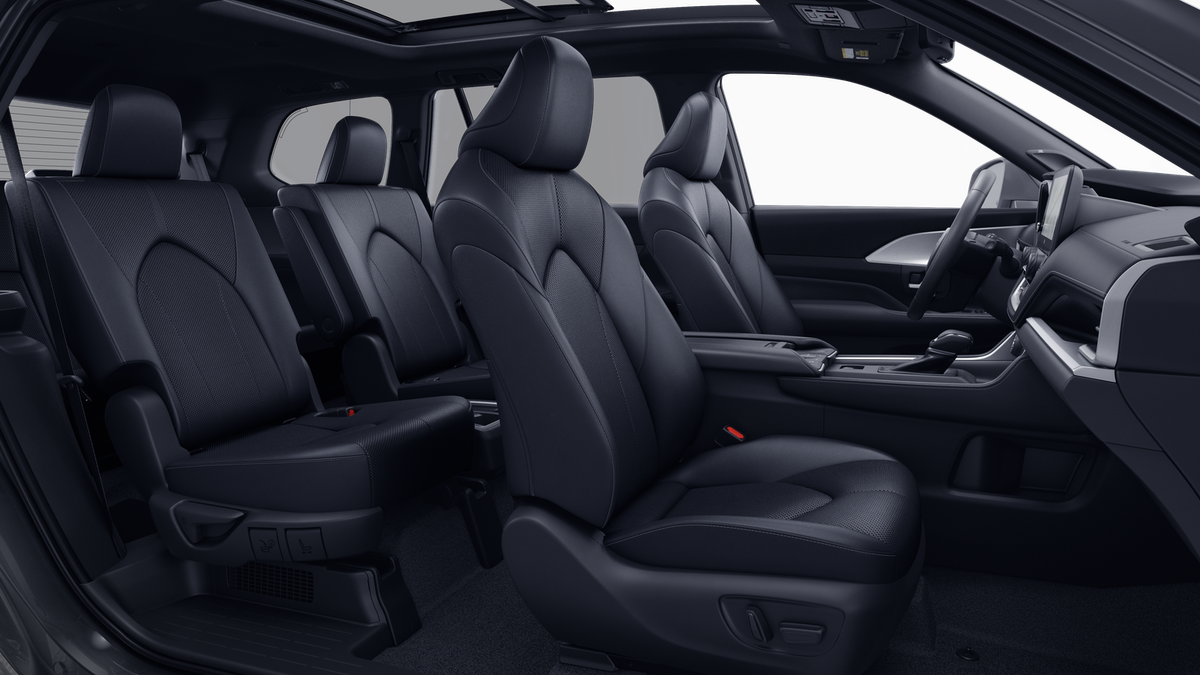 - 7-passenger seating with second-row fold-down captain's chairs and fold-down inboard armrests, adjustable headrests and two cup holders mounted on the floor; and 60/40 split, fold-down third-row seats with sliding headrests and recline function